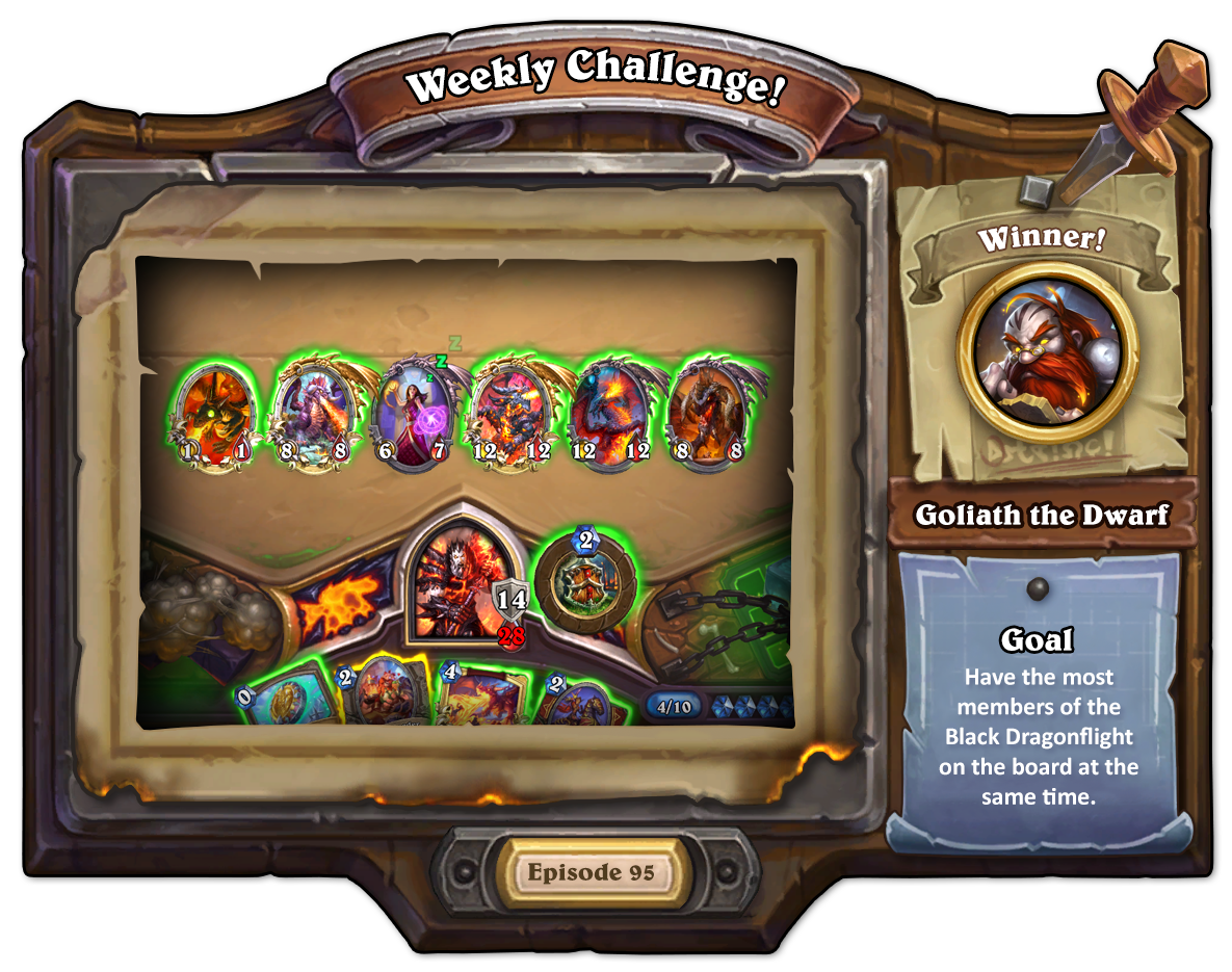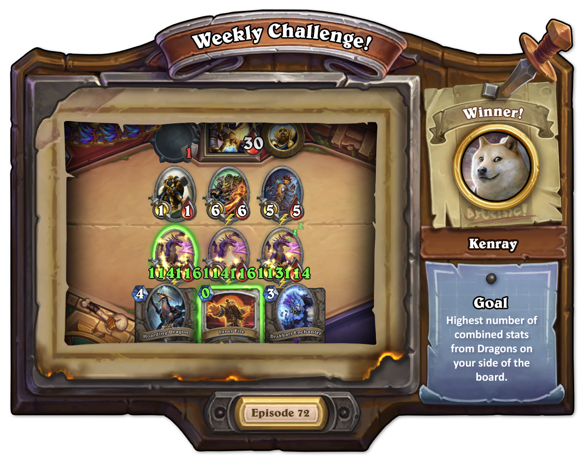 If the Weekly Challenges involves a game being played, it can be played in Casual or on Ladder, but not against a friend or against the Innkeeper. We don’t want you to tank your rank, but we also don’t want to make things too easy. If the Weekly Challenge does NOT involve a game being played (for example, building a custom card), disregard this advisement.